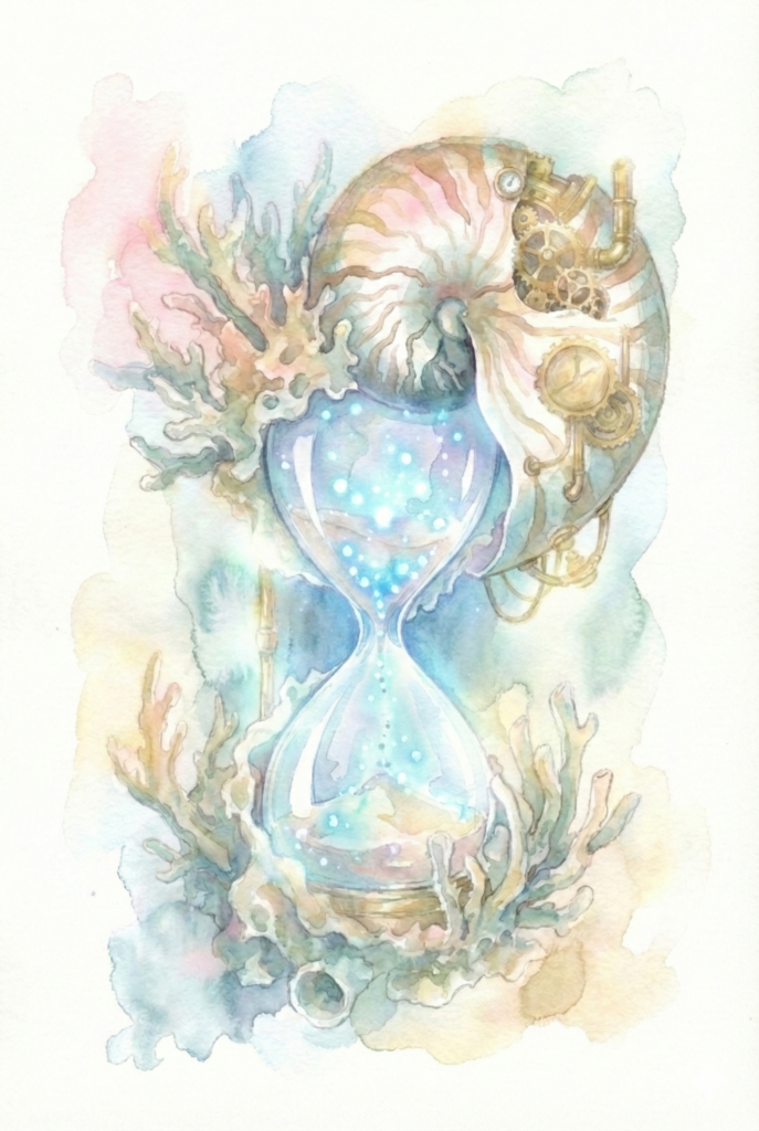 刻(とき)の深淵を泳ぐ。砂が落ちるたび、螺旋の殻は新しい記憶を刻んでいく。