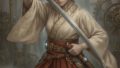 The youth in traditional Japanese attire draws a mechanical katana (机巧刀) that houses a steam engine piston and gears within its blade.