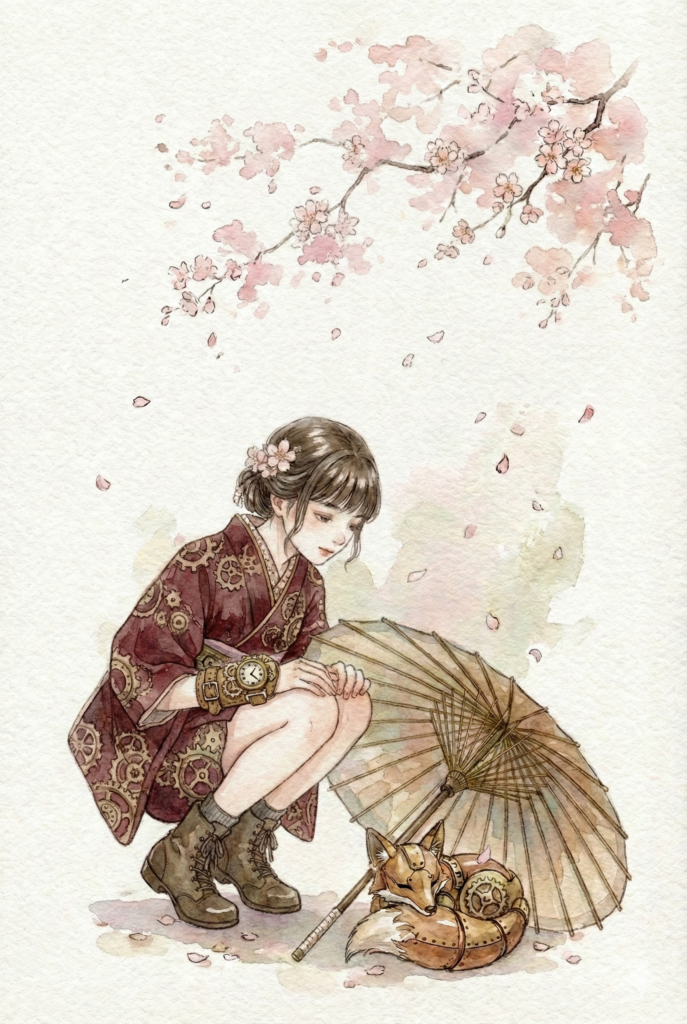 少女と機巧の狐は、春の陽だまりに包まれて小さな眠りにつく。