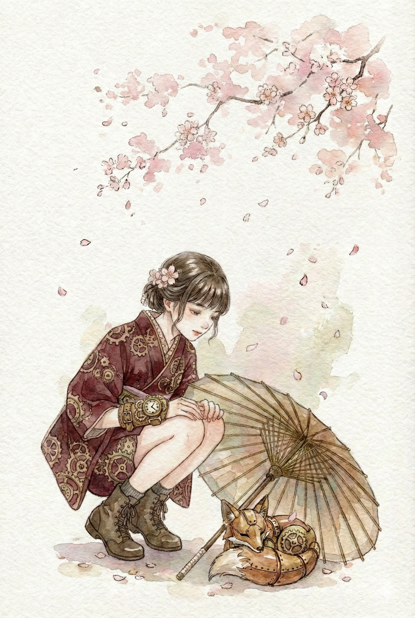 The girl and her clockwork fox fall into a small slumber, wrapped in the spring sunshine.