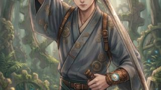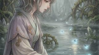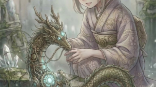 作品解説 / Description「霧の深淵」の奥深く、苔むした巨大な歯車が眠る水辺で観測された、和装の乙女の記録。彼女の髪には精緻な真鍮の歯車飾りが組み込まれ、手首の機巧腕輪(クロノグラフ)は、闇夜に舞う蛍の瞬きと同期するように静かな刻...